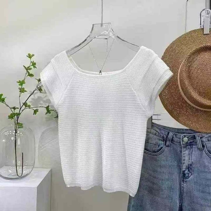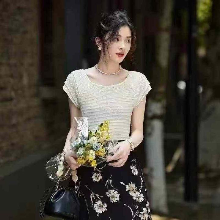 小飞袖设计感小众显瘦针织短袖上衣,整款两色,均码,...