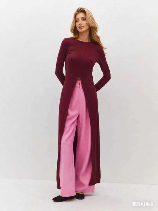 6.8清欧美女装新款时尚修身纯色开叉性感长袖连衣裙,...