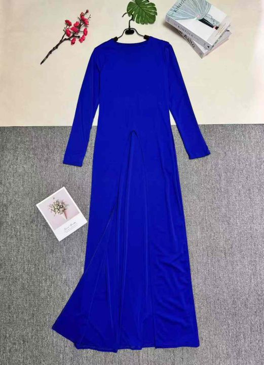 欧美女装新款时尚修身纯色开叉性感长袖连衣裙,整款两色,数量203条,码数S-XL,两侧口袋设计,高弹力品质好,拉链式包装。
