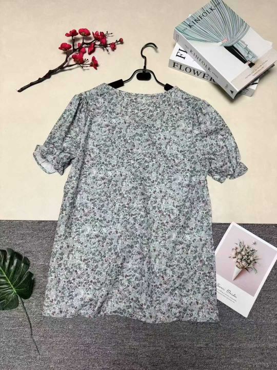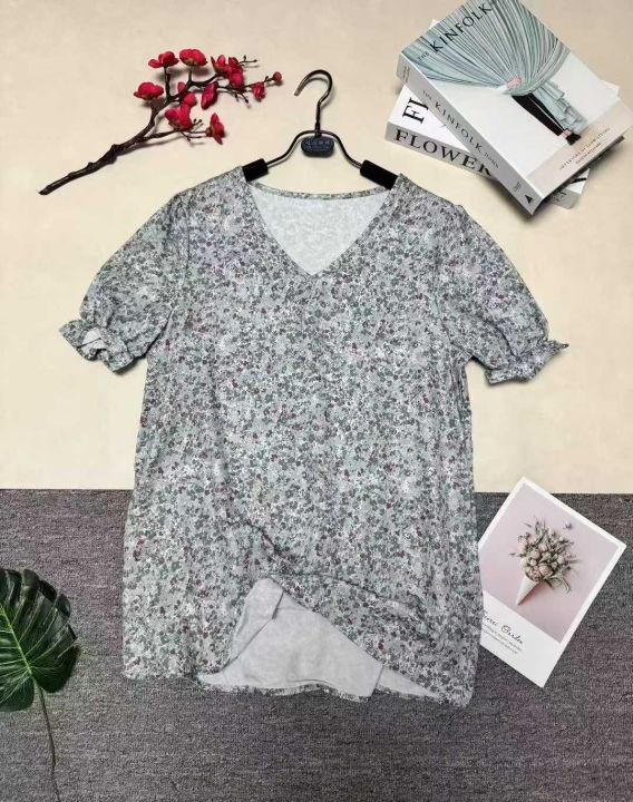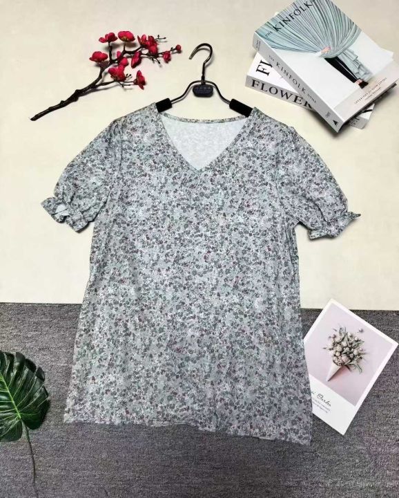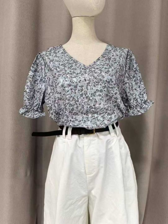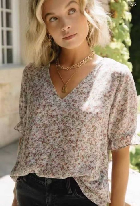 时尚大码女装洋气泡泡袖碎花V领上衣,单款单色,数量3127件,码数S-2XL,微弹品质好,全部原拉链袋包装。