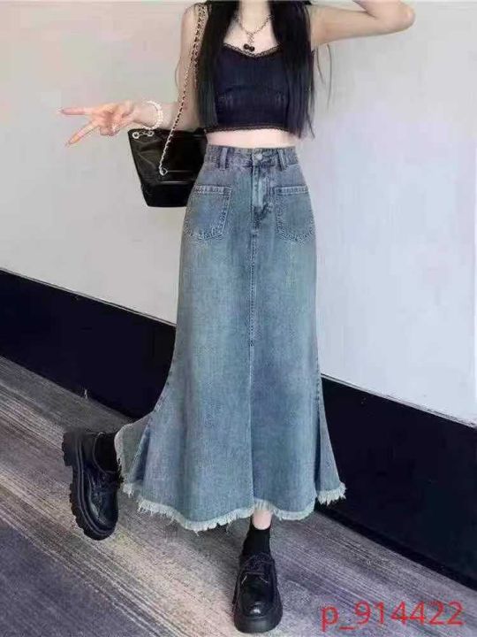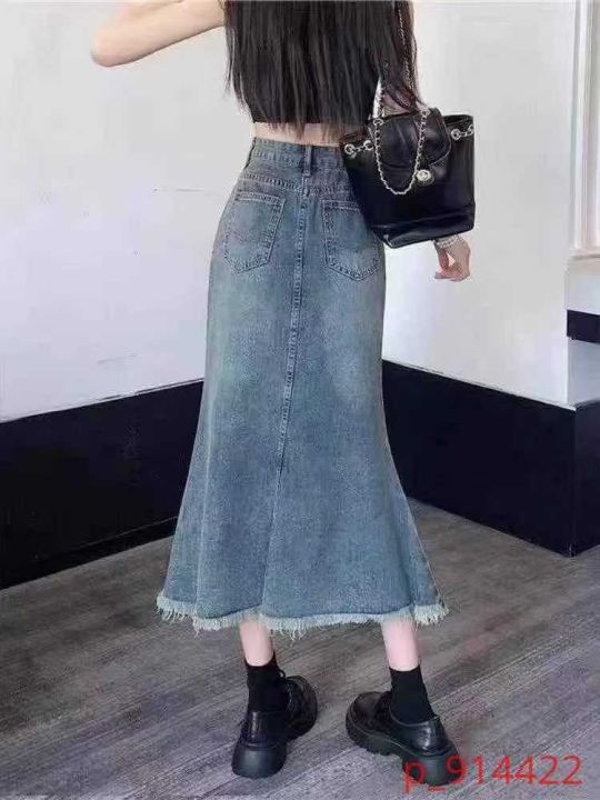 时尚洋气毛边鱼尾裙摆牛仔半身裙,整款,品质好,内包边包条,独立包装带吊牌,码数XS-5XL,数量218件,全清7.8元秒。 _@_@