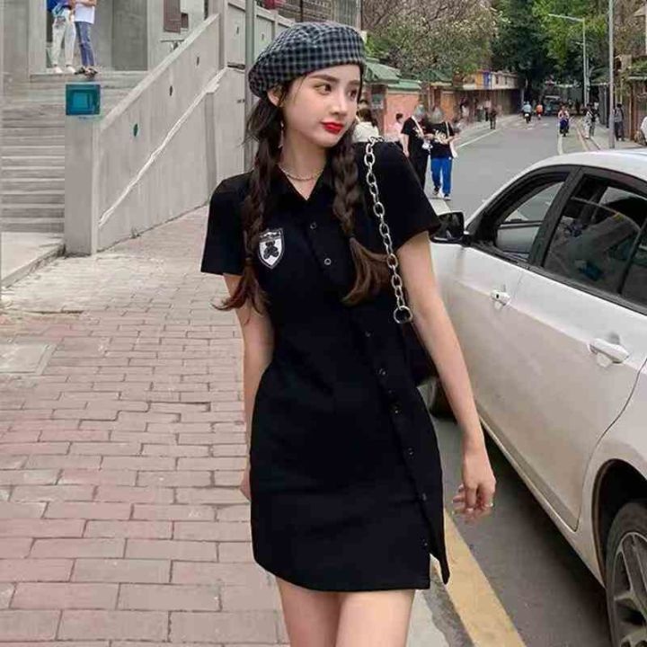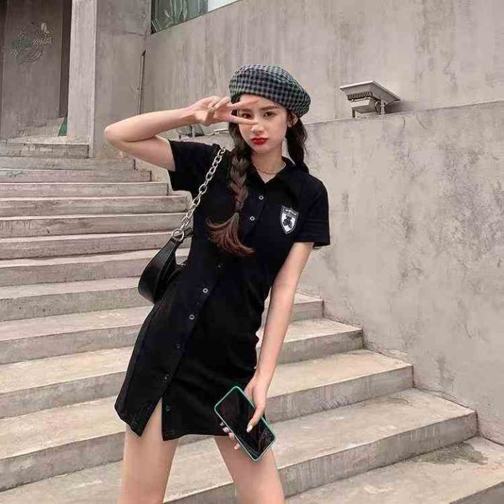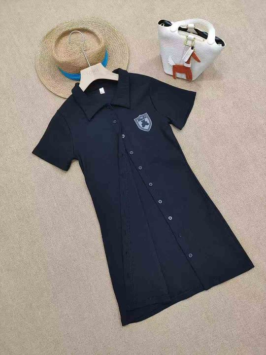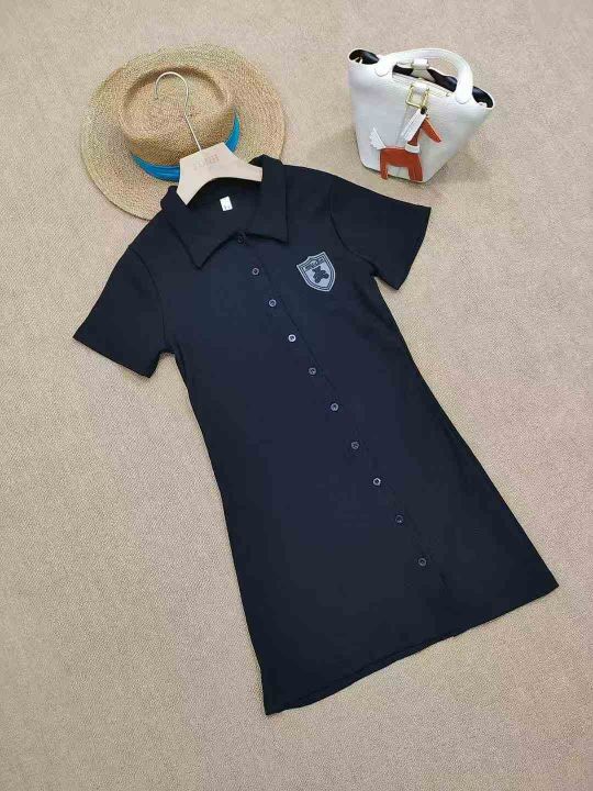 [月亮]:刺绣小熊Polo显瘦开扣连衣裙