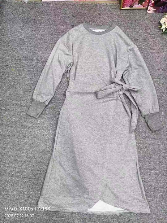 棉质裙女春秋中长款显瘦裙子韩版气质收腰长袖绑带连衣裙,面料厚实有重量,单款单色,1.2码,520件左右,8.8清,分货加1