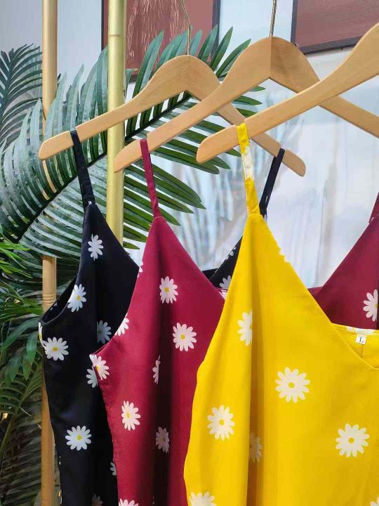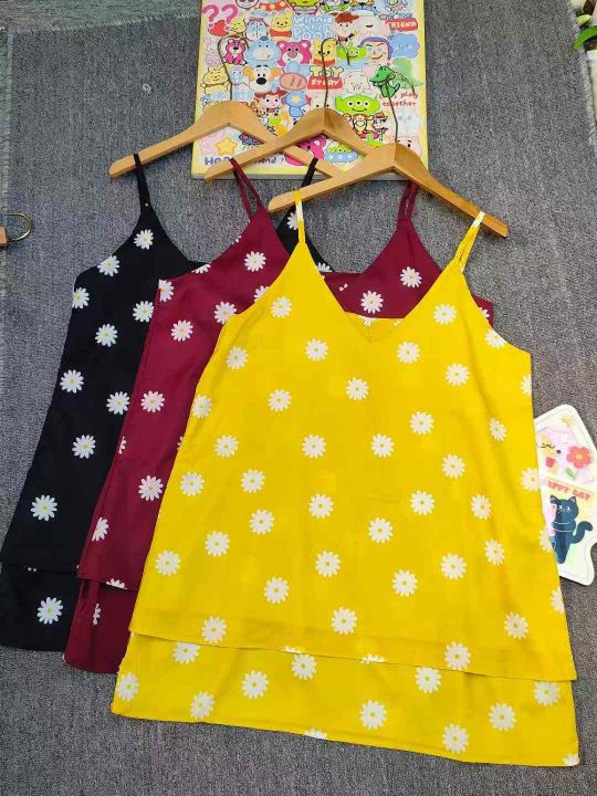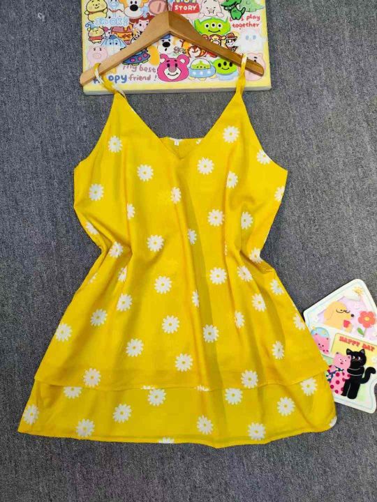 110件夏季大码女装小雏菊印花宽松大版双层吊带连衣裙 单款三色,S-2XL码 S码裙长81cm,拉链袋包装。