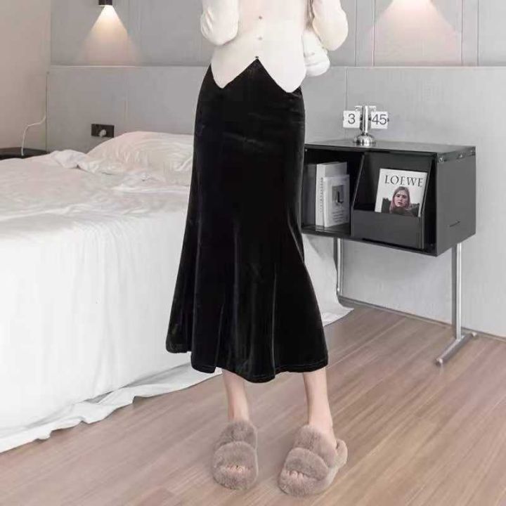 1238件半身裙金丝绒鱼尾裙修身显瘦包臀2025秋冬装光泽垂感松紧腰高腰长裙,单款两色 黑色为主,两种长度:过膝中长款 长款到脚面,长短款各半 加绒不加绒各半,码数S-3XL码 独立包装。