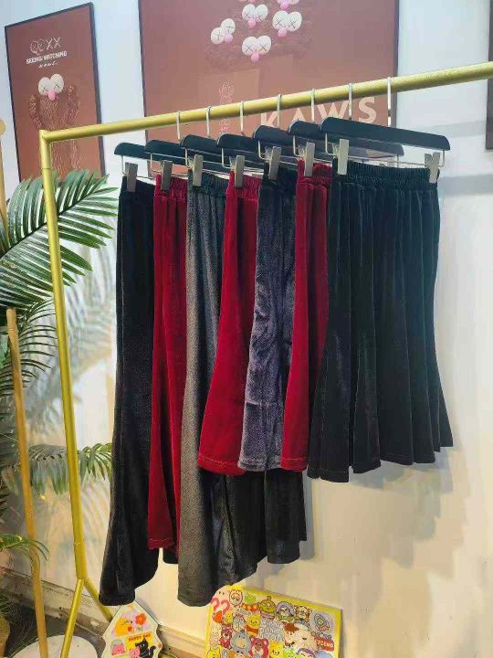 1238件半身裙金丝绒鱼尾裙修身显瘦包臀2025秋冬装光泽垂感松紧腰高腰长裙,单款两色 黑色为主,两种长度:过膝中长款 长款到脚面,长短款各半 加绒不加绒各半,码数S-3XL码 独立包装。