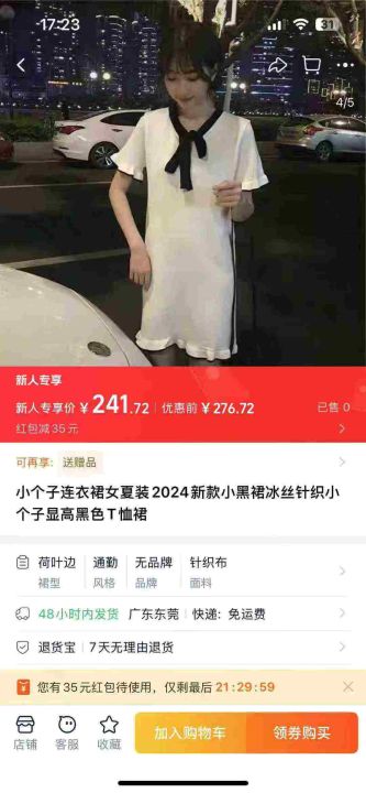6.9元清赫本风法式针织宽松连衣裙,数量209件左右,均...