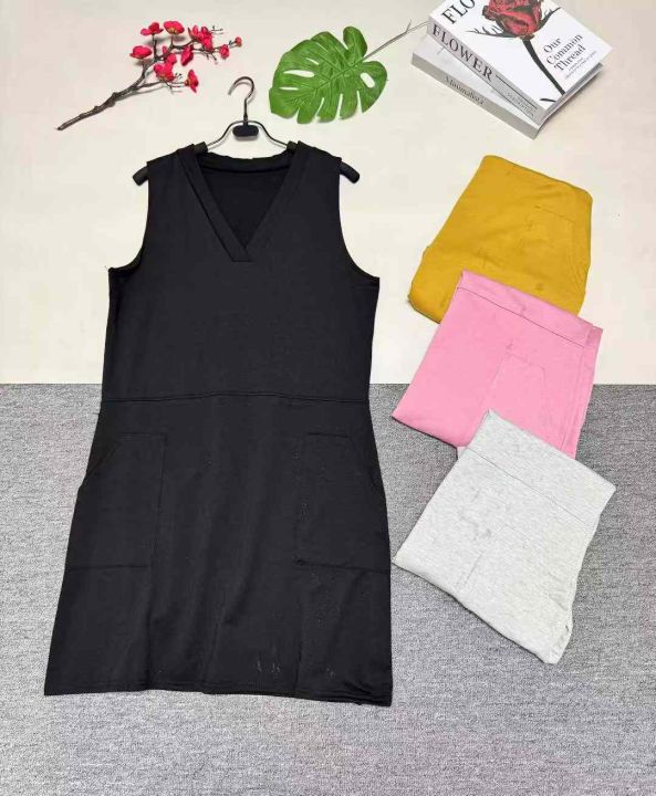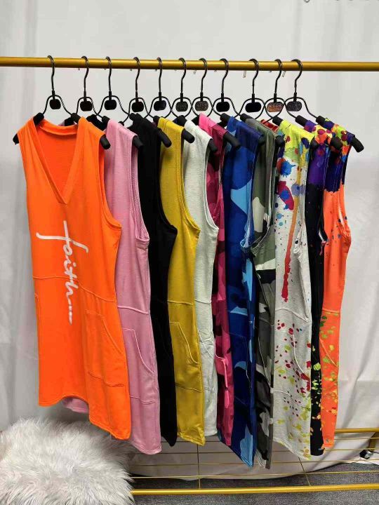 欧美时尚宽松双口袋V领无袖背心连衣裙,图片款整款多色,数量1100件左右,码数S-2XL,高弹力品质好,拉链式包装。