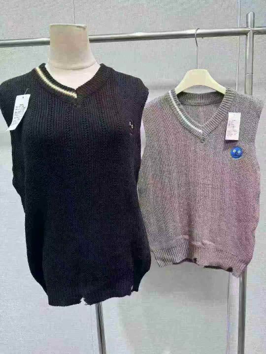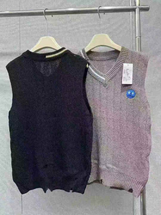 清500件,宽松男女复古笑脸V领针织马甲套头背心,秋季V领修身无袖休闲背心,码数m-2xl。