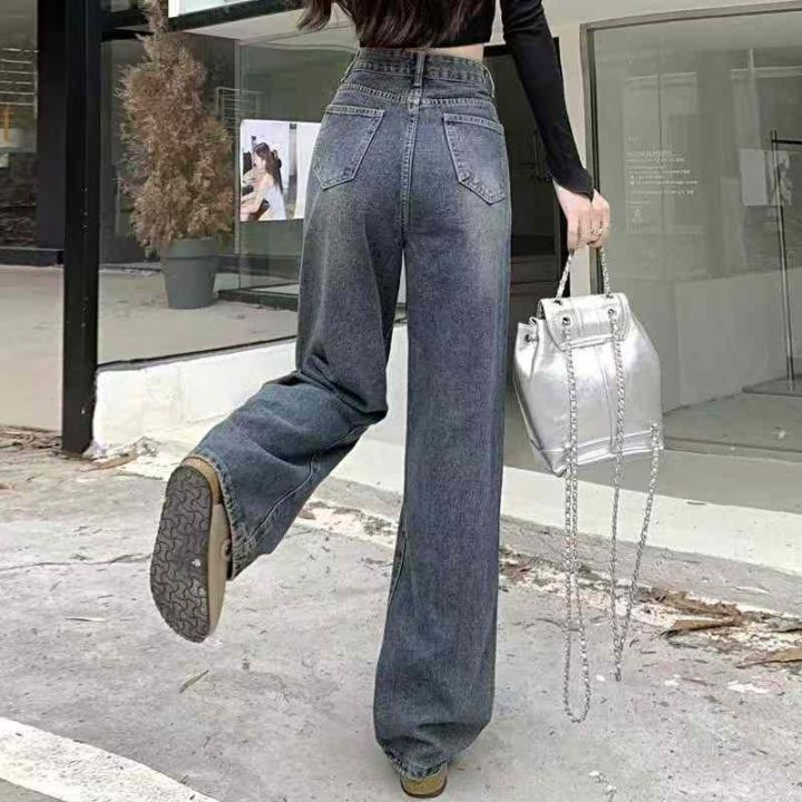 款号8825阔腿女装牛仔裤高腰宽松垂感拖地裤直筒长裤,...