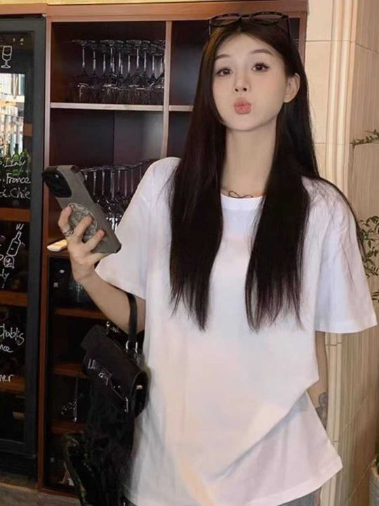 ☕️纯棉短袖t恤女夏季新男女装宽松圆领体恤纯色打底...