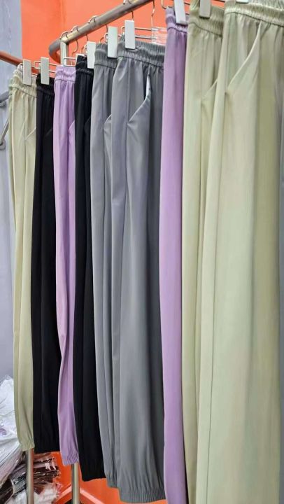 [太阳]14.8,XL-3XL 女士锦纶冰丝直筒和束脚裤,松紧腰身带抽绳,有口袋,带有弹力,多色,垂感好,品质好,独立包装带吊牌。100件起多色混配15.8