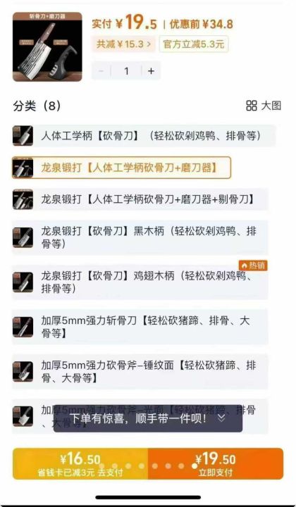 品牌斩切刀,入库2000张左右处理,淘宝盒包装,每件60把带盒。几块钱的事。