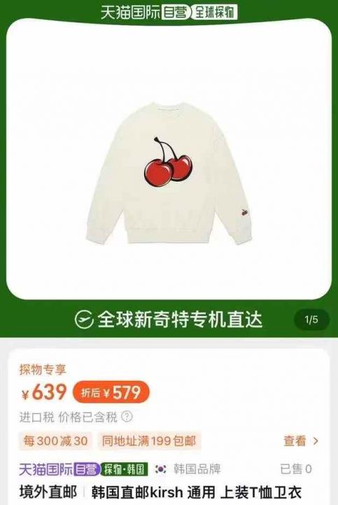韩国潮牌kirsh 樱桃重工刺绣加绒卫衣,独立原包装,超级漂亮[强]。 ...
