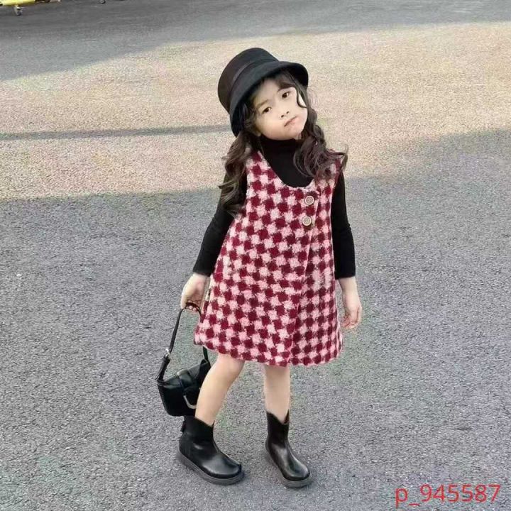 [月亮]:潮童韩版毛呢马甲连衣裙