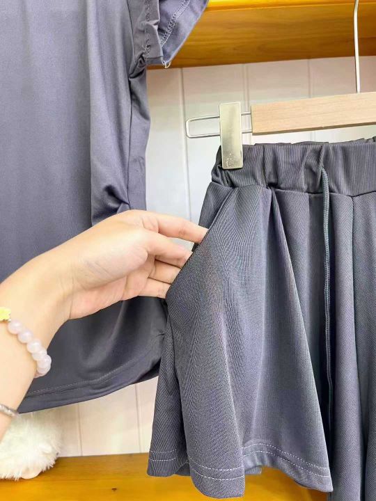 ① 休闲气质靓妹夏季短袖短裤两件套装,质量很好,整...