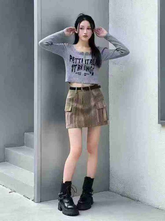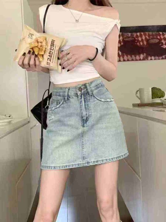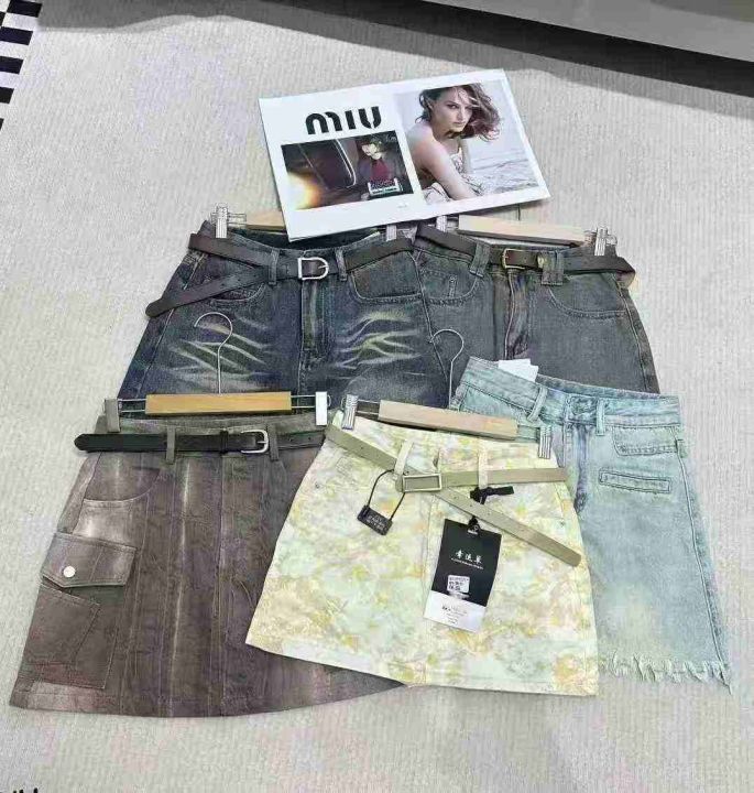 杭州品牌复古工装牛仔短裙裤夏季新款小众设计感女装短款辣妹高腰显瘦做旧A字裤裙,带内衬,S-XL码,400件左右,高货独立包装带吊牌大多附送腰带,品质绝绝子,全清9.8,分货➕1元