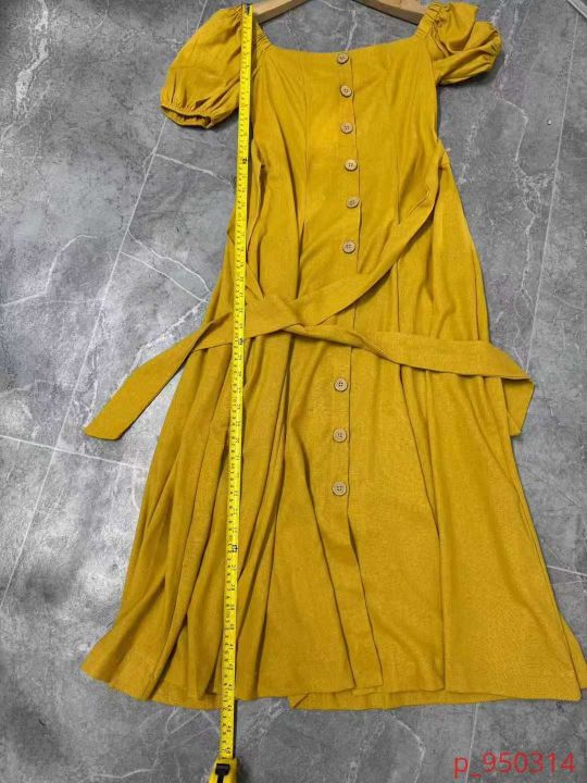 [爱心]15.8元法式亚麻黄色收腰连衣裙夏季2025新款显瘦...
