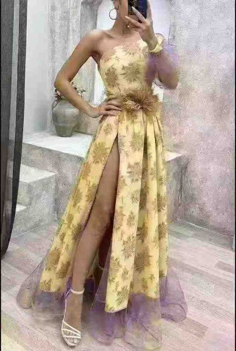 单肩长款礼服连衣裙,清10.8数量395条。全部拉链原...