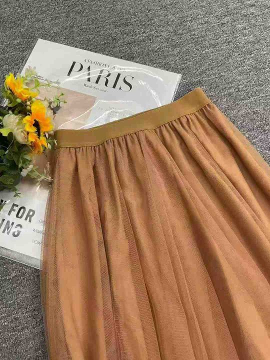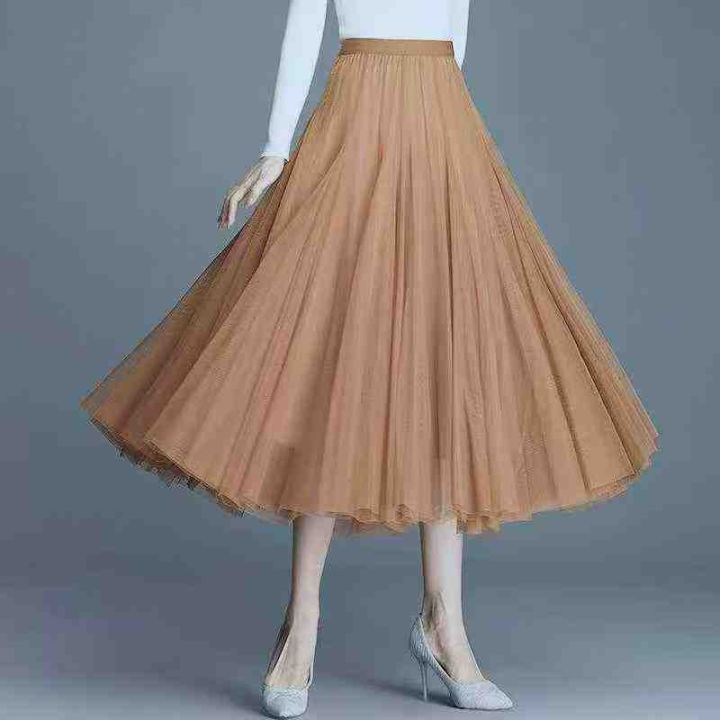 夏秋季新款时尚百搭显瘦百褶大摆裙网纱半身长裙,独立...