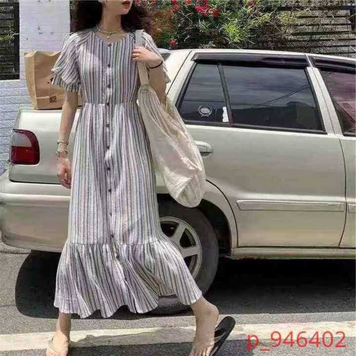 编号:[20797] ¥10.8元 女装/女士服装 裙子 连衣裙 冰丝/蕾丝/雪纺/麻质 法式复古连衣裙泡泡袖收腰显瘦鱼尾长裙条纹衬衫SML独立包装带吊牌好全清French Retro Dressفساتين فرنسية قديمة 库存:120件