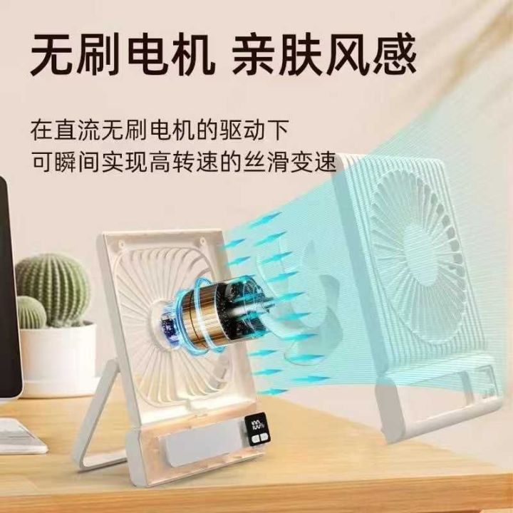 桌面支架风扇,5档风力+3档灯光,1200毫安电池,无刷...