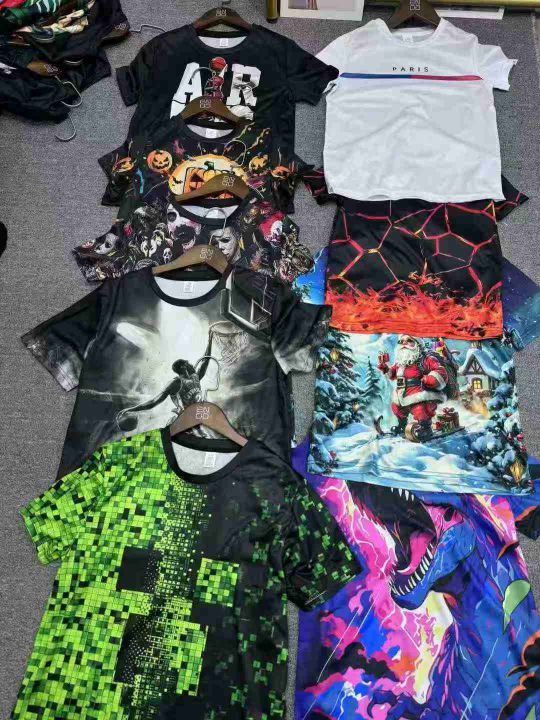 3.5元全清,33640件 外贸中大童3D印花T恤,短袖跨境童装短袖T系列印花儿童休闲上衣,带有后领包边,两个面料分别,网眼面料 涤纶面料,透气舒适,码数110-160,都是独立拉链包装!分货50起4.8