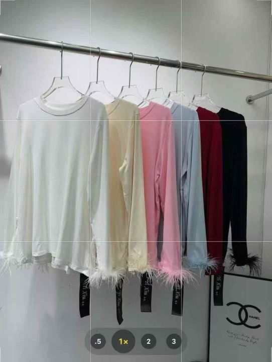 韩系羽毛袖口设计长袖内搭打底衫女春秋设计感宽松休闲别致小上衣,袖口超级好看,✨ 看似简约实则藏小心机!羽毛缀饰让纯色T秒变精致,宽松版型。80-140穿都没有问题,总共5-600件左右,30件一份,可以挑颜色配货