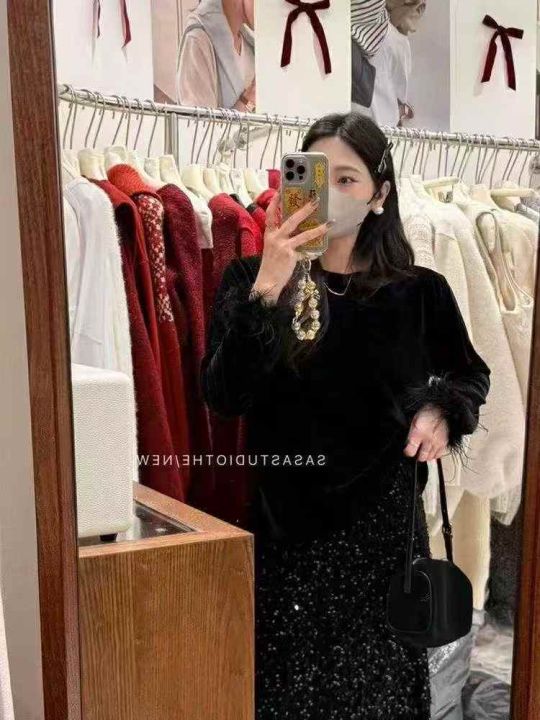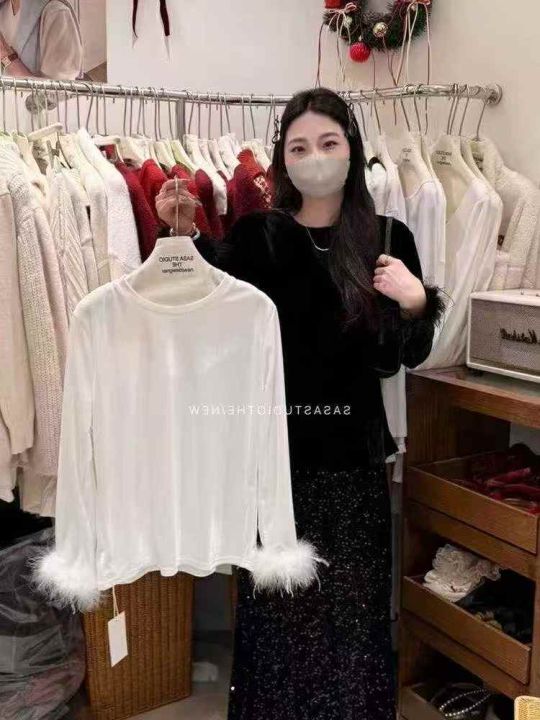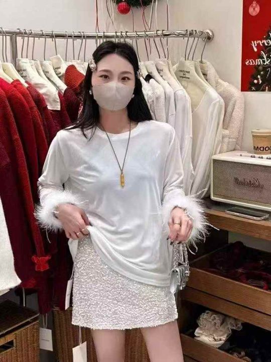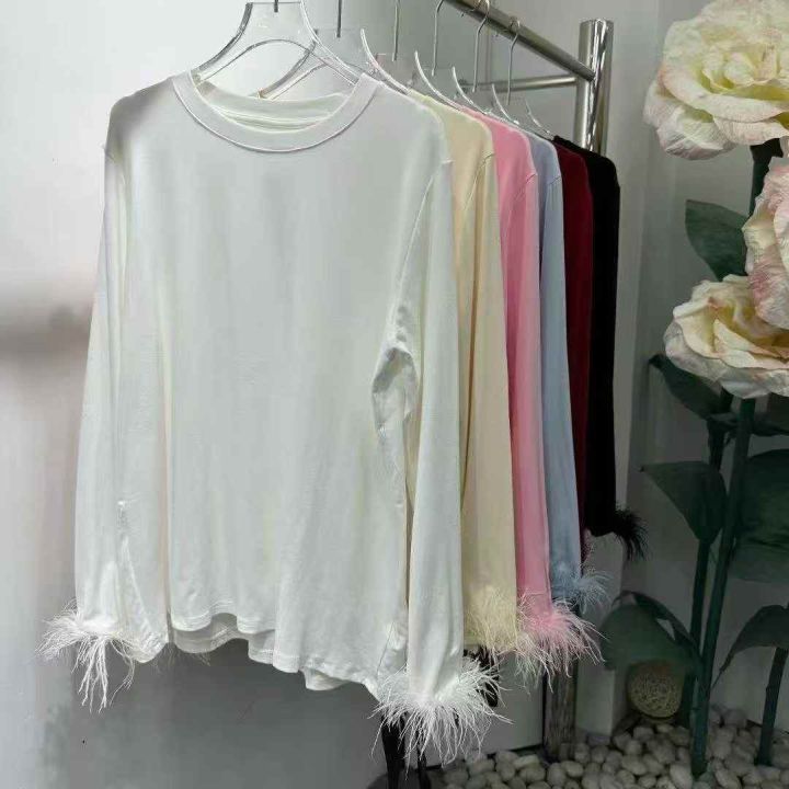 15.8韩系羽毛袖口设计长袖内搭打底衫女春秋设计感宽松...