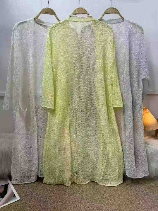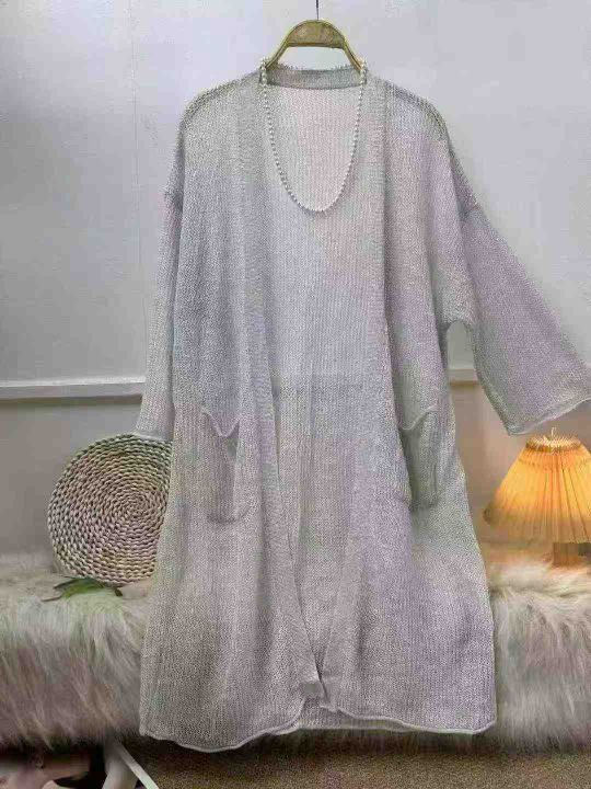 天猫下架货,防晒衫薄款针织开衫 女士夏季新款宽松中长款冰丝空调衫 外搭披肩长外套,单款三色,84件:均码,独立包装,实物拍摄,图片款式,全清5.9