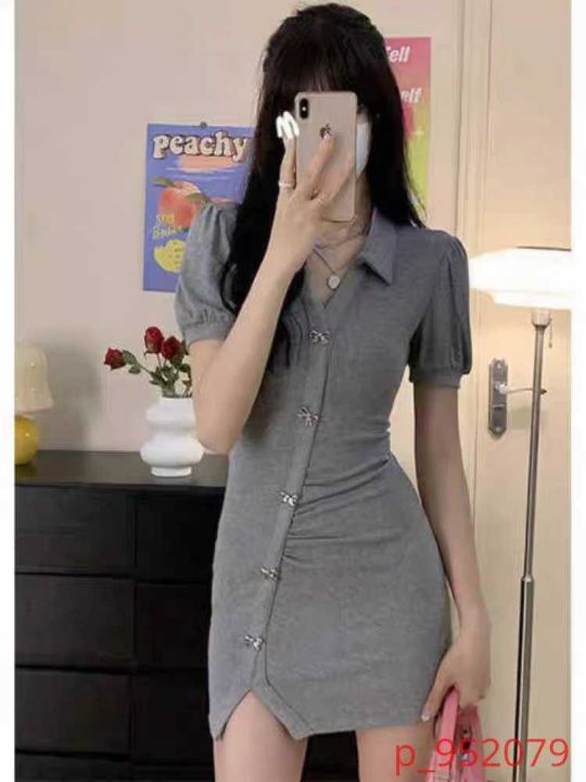 ① 纯欲风修身开叉蝴蝶结针织polo连衣裙!独立包装,...