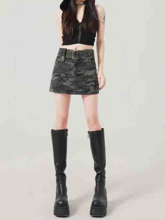 夏季新款美式复古辣妹洗水棉牛仔半身裙,独立包装带吊...