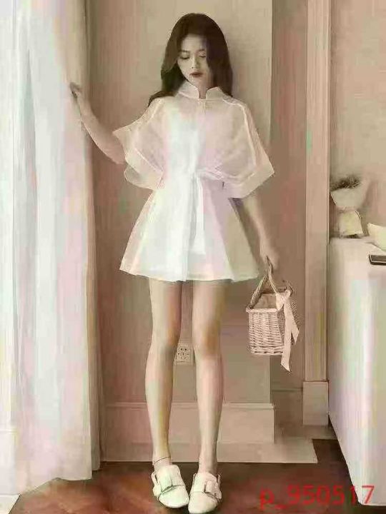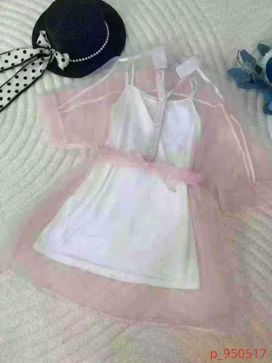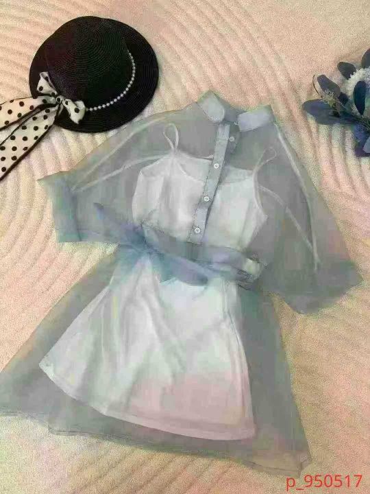 【两件套】镂空薄纱短裙收腰甜美两件套吊带衫欧根纱连衣裙上衣