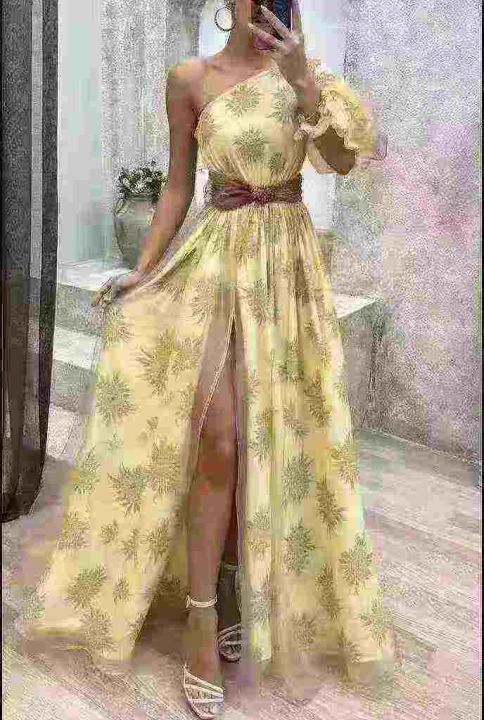 单肩长款礼服连衣裙,清10.8