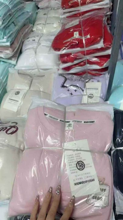 6000件美式慵懒圆领糖果色卫衣女春秋2025新款爆款小个子宽松上衣 80-160斤左右可穿 50件/100件一份 螺纹棉面料 本部包边 全部当季新款 花型很多 统一类型~~