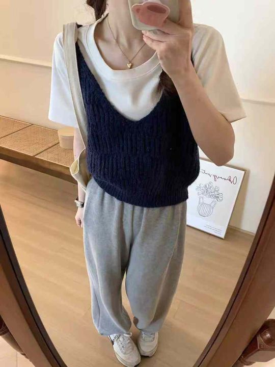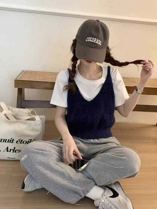 品牌原单女装早秋新款复古港风chic叠穿v领针织吊带背心马甲, 独立包装,均码面料软糯舒适弹力牛仔,450件,全清3.9元超低价秒杀!分货加一!