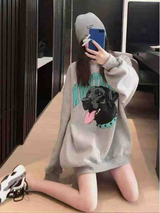 卫衣女薄款2025新款美式复古宽松慵懒风圆领上衣狗狗字母印花,面料舒适,后领包边,上身效果巨巨巨好看[666]独立包装,带吊牌。100/200件起多款混配13.3