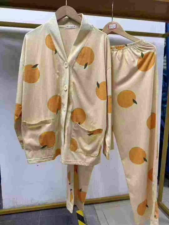 高档100%纯棉睡衣女春秋季长袖无领开衫