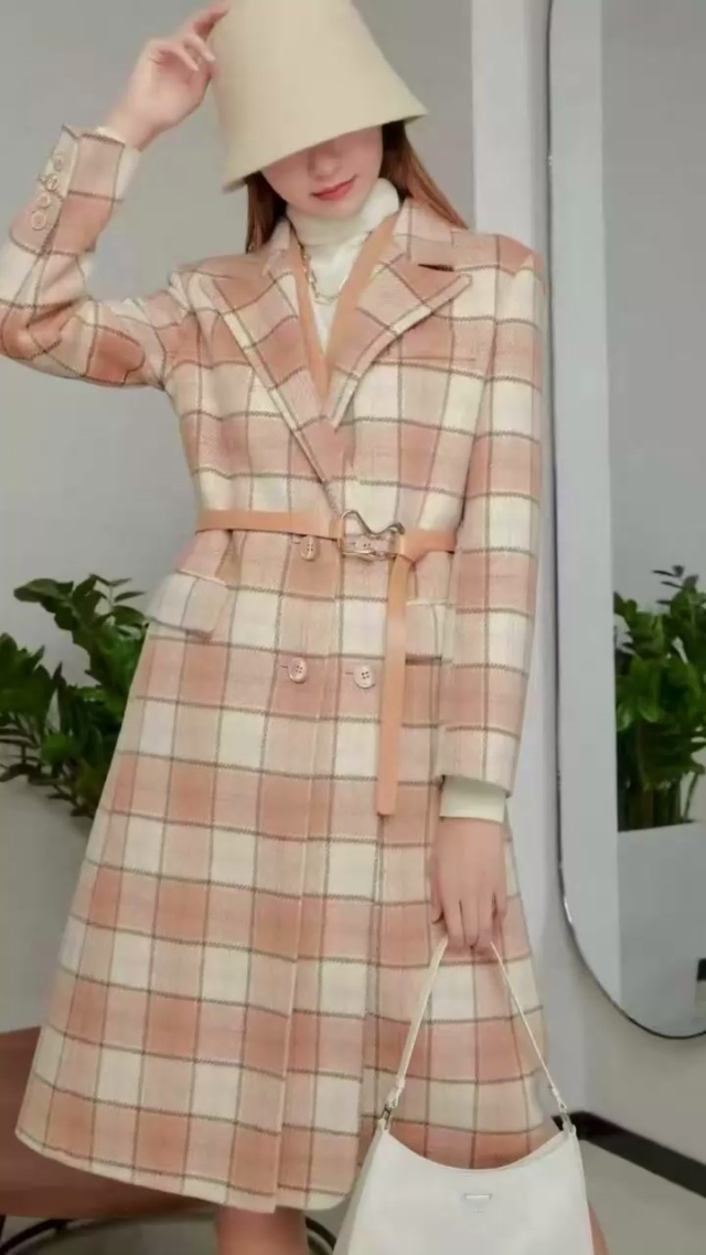 201件,欧美秋冬格子灯笼长袖毛呢外套夹克亚马逊时尚女装,独立包装,码数S...