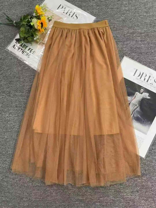 夏秋季新款时尚百搭显瘦百褶大摆裙网纱半身长裙,独立...