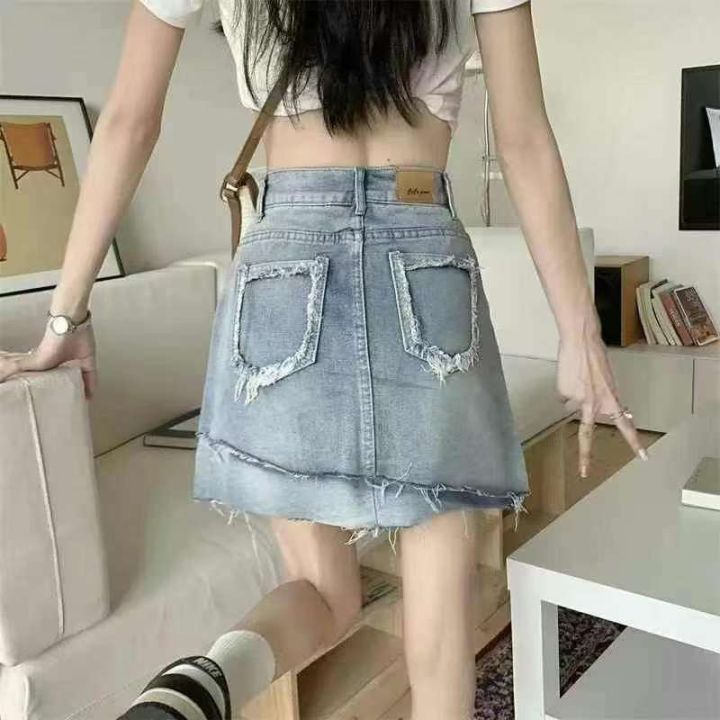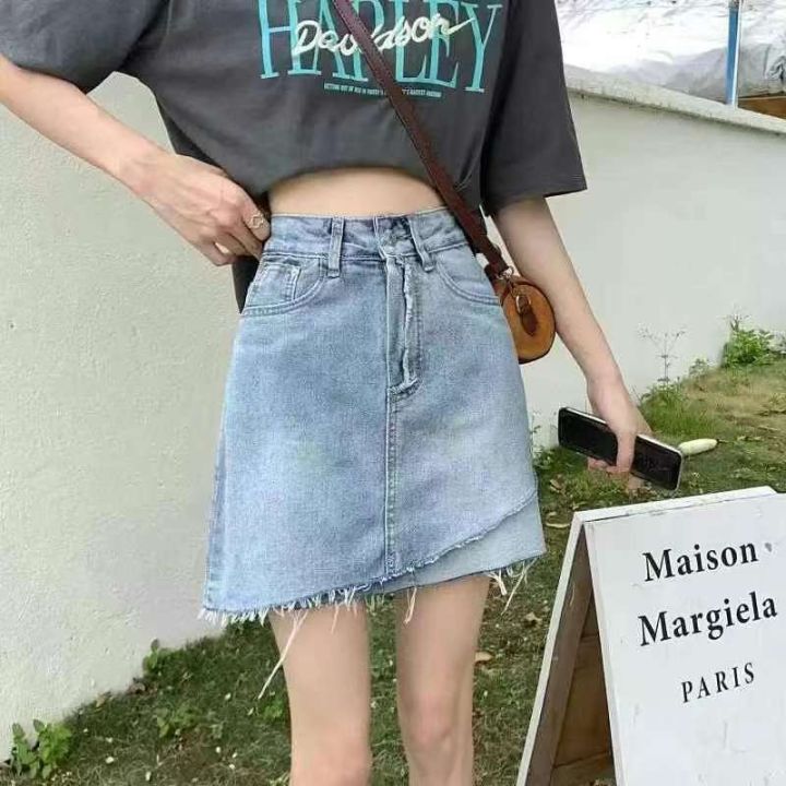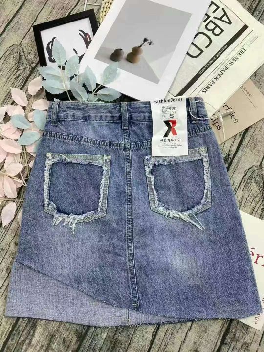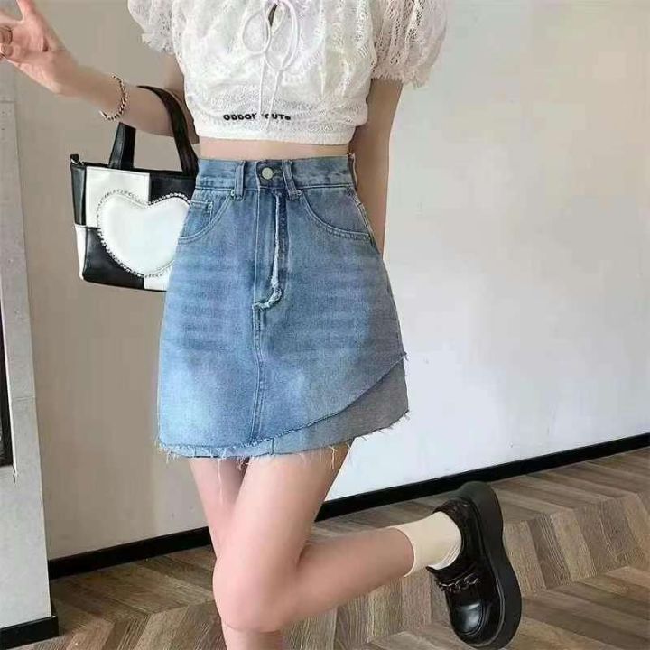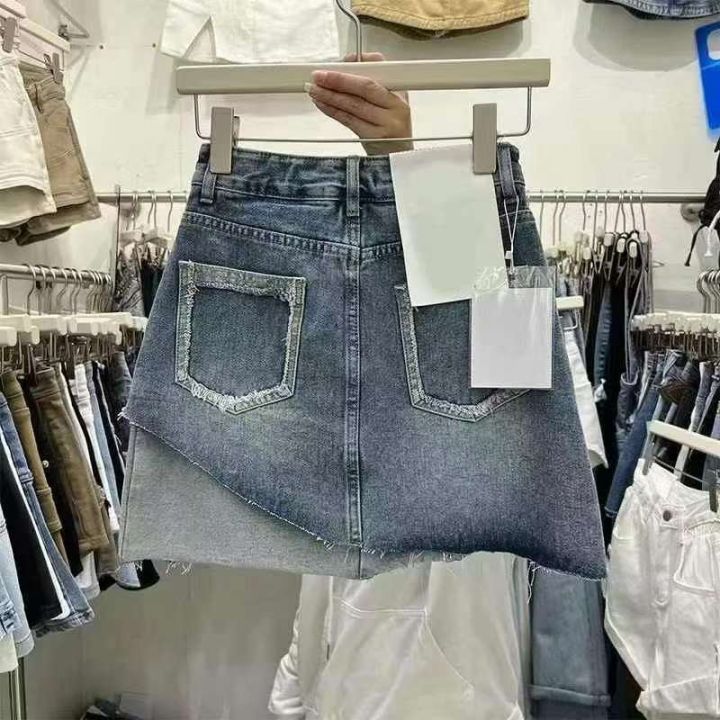 ☕️牛仔短裙560条全清9.9元,码数XS到XL,独立包装吊牌,设计感不规则a字假两件牛仔半身裙新款高腰包臀裙