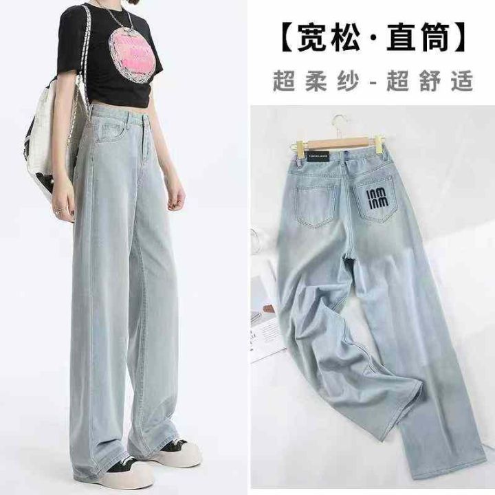 秋季新款高品质高腰显瘦宽松字母刺绣水洗棉窄版直筒阔...
