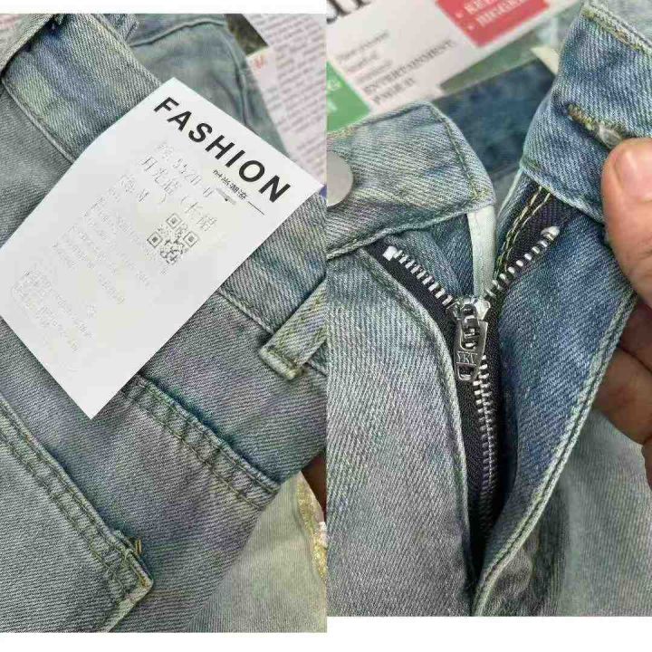 ☕️高弹力微辣牛仔裤女新款秋季直筒高腰小个子毛边腰头拼接复古喇叭裤子 2...