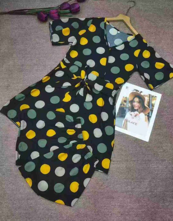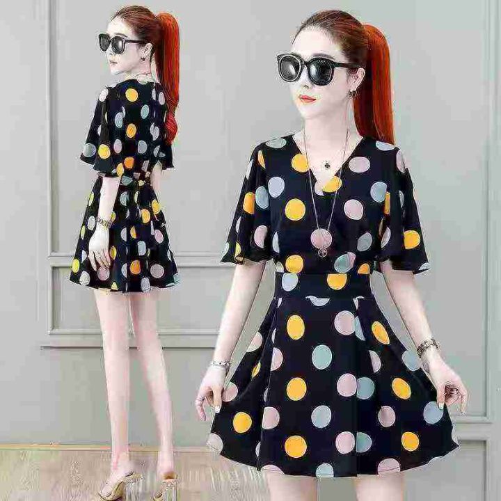 [福]连衣裙波点小个子炸街裙子短裤两件套221套,码数M...