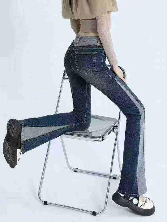 ☕️高弹力微辣牛仔裤女新款秋季直筒高腰小个子毛边腰头拼接复古喇叭裤子 2...