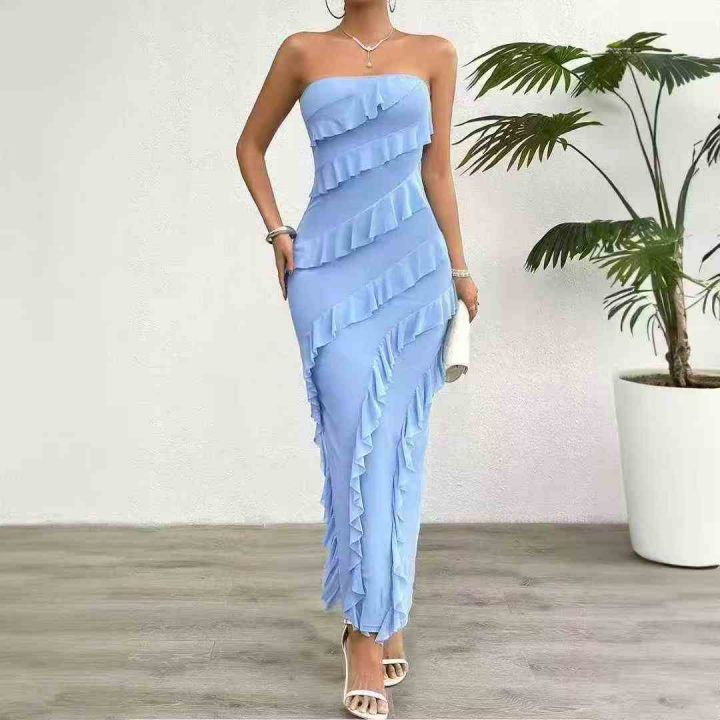 欧美高级礼服立体荷叶修身长裙优雅爆款礼服,独立包装,S -2 xl码,16 8件...