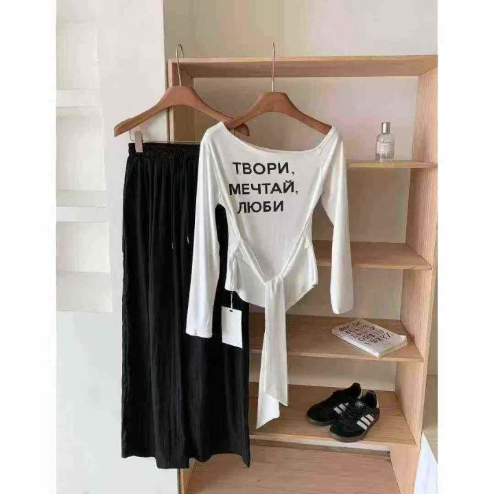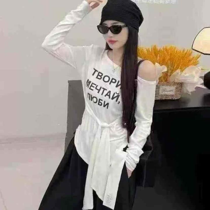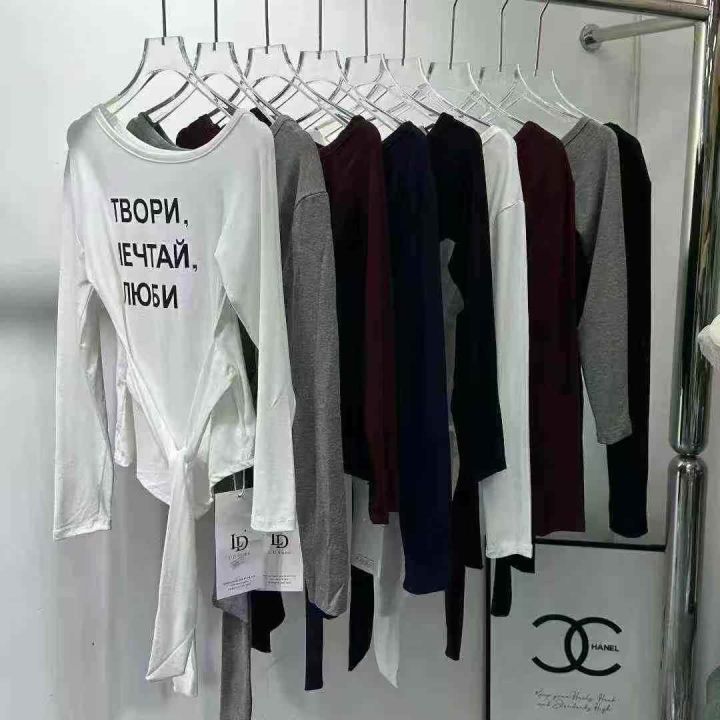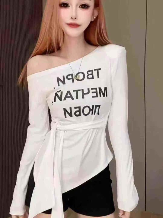 时髦精私藏 斜领绑带T恤,字母印花+独特剪裁,侧边系带增添设计感,多色基础又百搭,早秋单穿叠穿都很绝,轻松拿捏韩系松弛感~ 全部视频款配货。30/50/100均可配