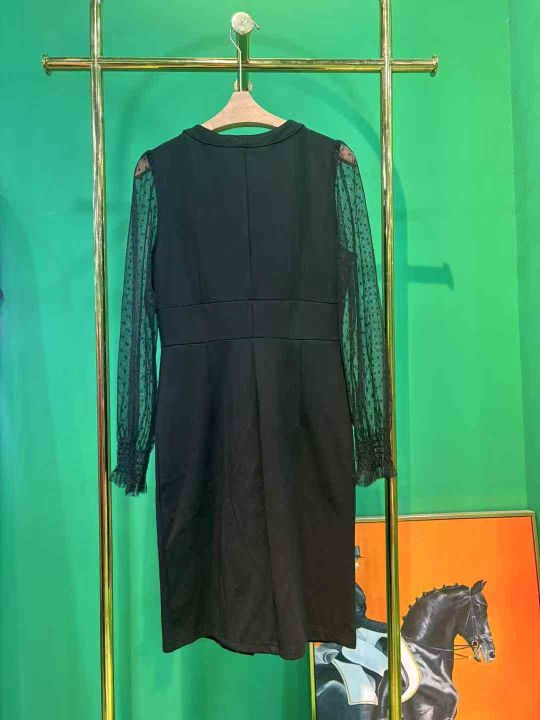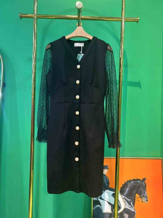 130件左右春秋新款气质黑色设计感泡泡袖V领修身中长款连衣裙!尺码S-XL高弹力!专柜品质!独立包装!全清13.8