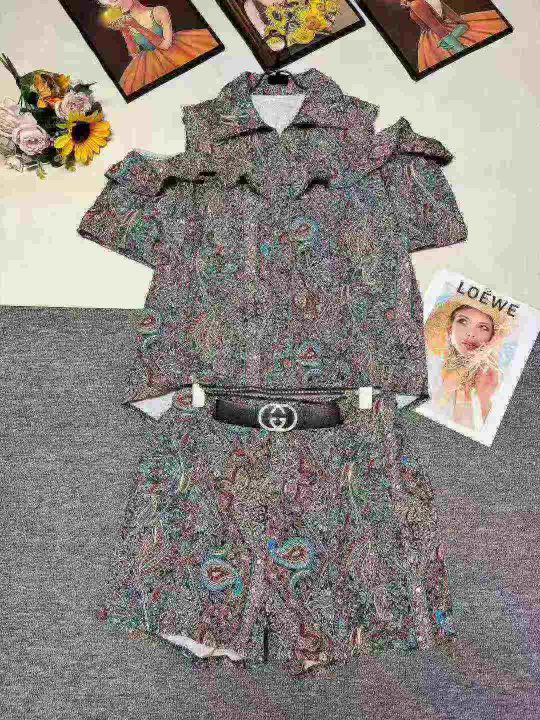 [福]亏本清645套时尚洋气碎花套装/露肩衫前拉链可连体...