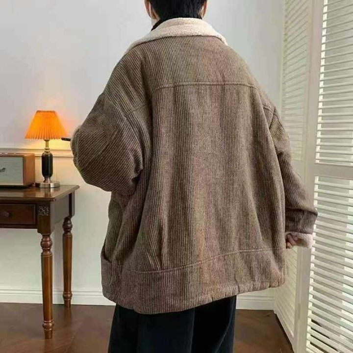 全清22.8 美式复古灯芯绒棉衣男冬季潮牌纯色羊羔...